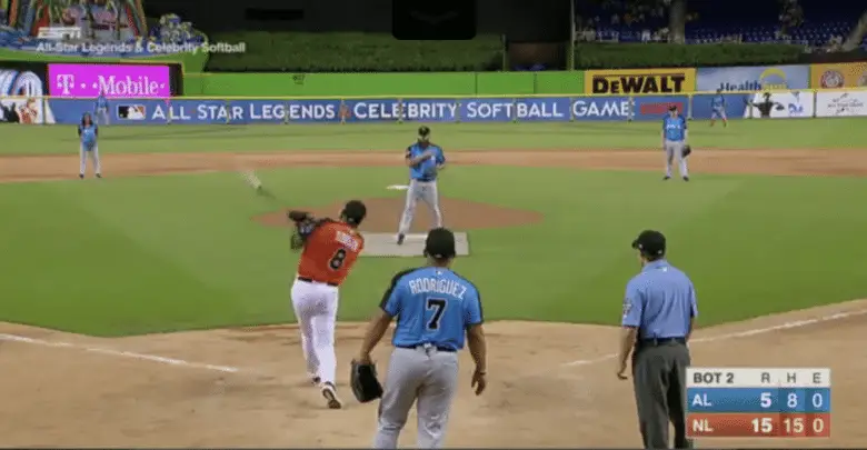 He now tips the scales at 230 pounds and can rep 295 on the bench press. Oh, and he can still hit dingers, albeit not necessarily off of 95 mph heat. The Cubs legend and Marlins employee was participating in the All-Star Legends and Celebrity Softball game, where he took two balls way over the short temporary fence. The second nearly cleared the wall in left — like, the actual permanent wall — which is an absolute bomb when you’re talking slow-pitch softball.