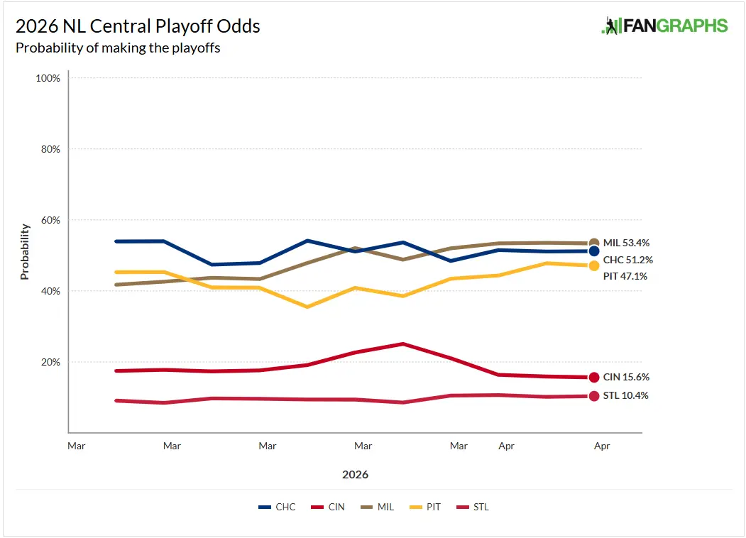 Entering play on Friday, the Cubs are in a three-way tie for third in the NL Central and boast a +6 run differential that’s better than all divisional opponents other than the Brewers (+28). The odds, however, have the Cubs just behind Milwaukee and a few points above Pittsburgh when it comes to their postseason odds. The latter team could get a boost when No. 1 overall prospect Konnor Griffin joins them.